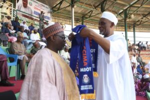 Director of Information and Public Relations, Federal Ministry of Environment, Ibrahim Haruna being decorated by the President, KADCCIMA, Alh. Farouk Suleiman at the event
